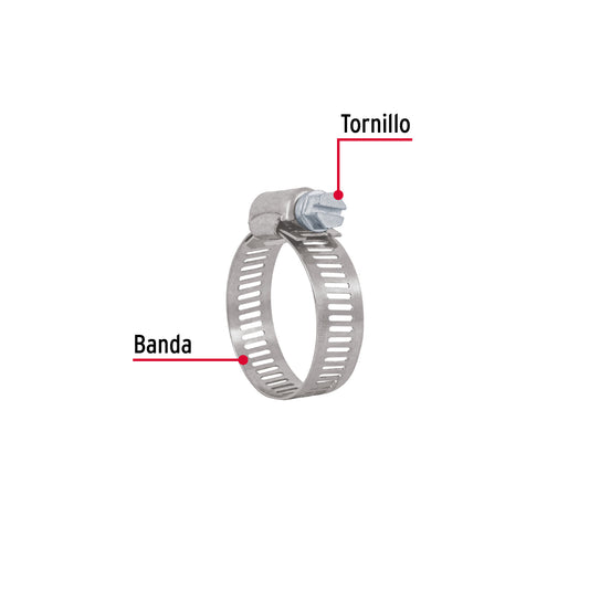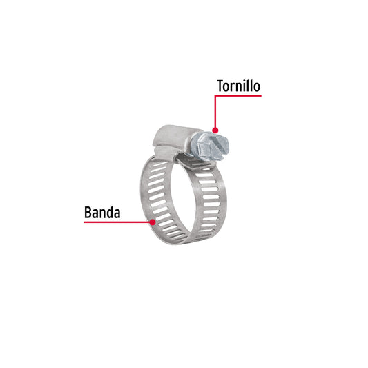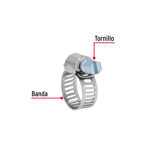 Proveedor:FieroBolsa c/10 abrazaderas mini, sin fin reforzadas #6, 1/2-3/4' Caja con 10, 44231Banda de acero inoxidable Tornillo de acero Para uso automotriz, industrial y doméstico