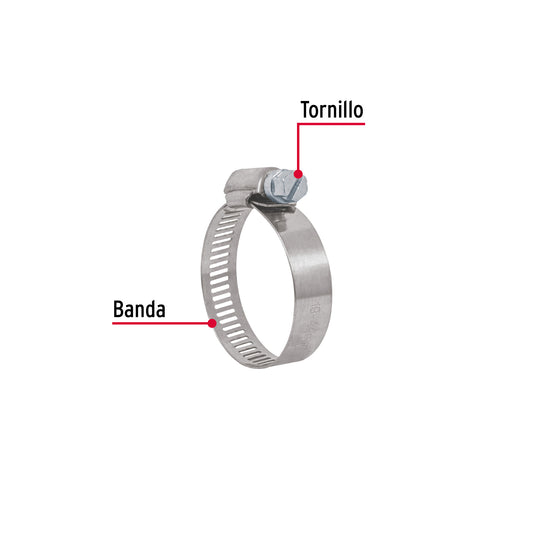 Proveedor:FieroBolsa c/10 abrazaderas sin fin reforzadas # 20, 3/4 - 1-3/4' Caja con 5, 44238Banda de acero inoxidable Tornillo de acero Para uso automotriz, industrial y doméstico