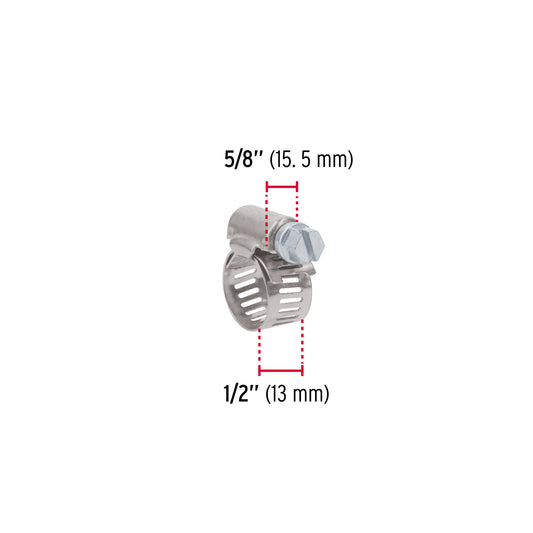 Proveedor:FieroBolsa c/10 abrazaderas mini sin fin reforzadas #3, 1/4'-5/8' Caja con 10, 44255Banda de acero inoxidable Tornillo de acero Para uso automotriz, industrial y doméstico