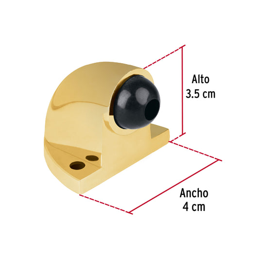 Proveedor:HermexTope tipo domo para puerta, acabado latón, Hermex Caja con 6, 43776Metálico Con protección de hule Se instala en piso Para puertas, ayuda a prevenir daños en las paredes