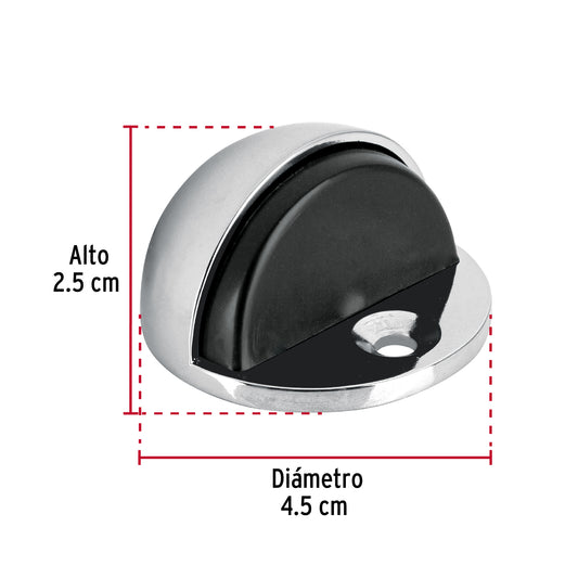 Proveedor:HermexTope tipo domo para puerta, acabado cromo, Hermex Caja con 6, 43777Metálico Con protección de hule Se instala en piso Para puertas, ayuda a prevenir daños en las paredes
