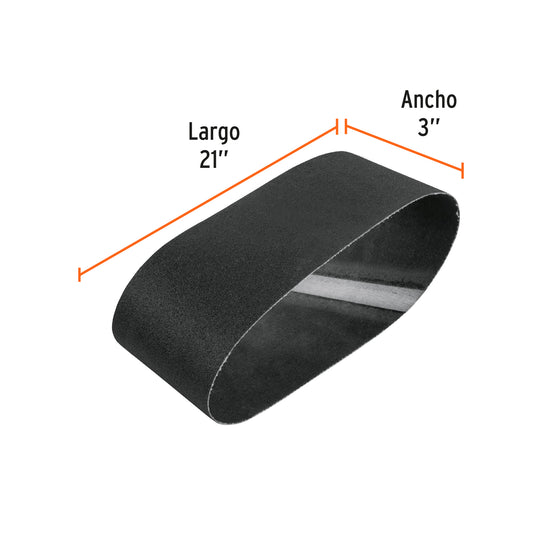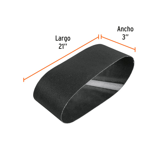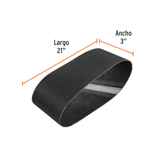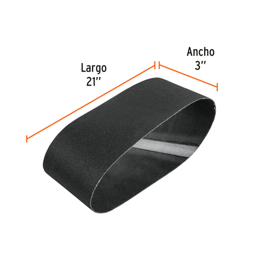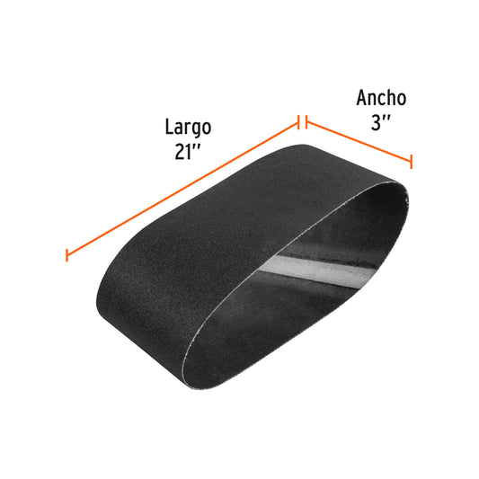 Proveedor:Truper1 banda de lija 3 x 21' p/vidrio grano 80 en paquete de 5 Caja con 5, 17768Fabricado en carburo de silicio Respaldo de tela de larga duración Para biselar y suavizar cantos agudos