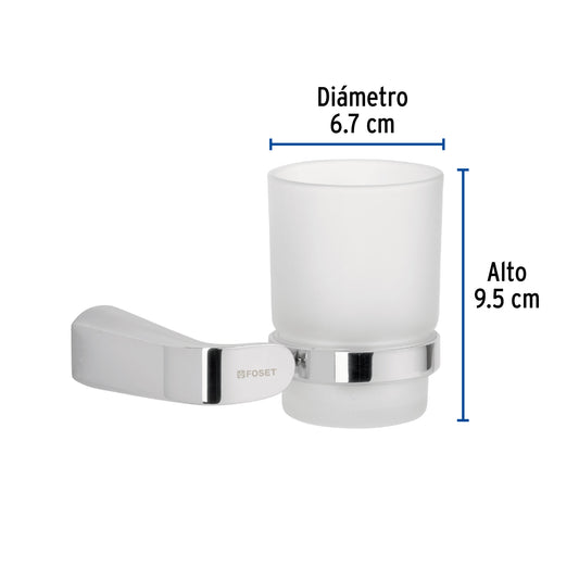 Proveedor:FosetPortavaso cepillero cromo con vaso de vidrio, Foset Riviera, 45205Vaso de vidrio esmerilado, extraible Soporte portavaso de latón para máxima duración Con sistema de montaje para semiempotrar Incluye llave allen, taquetes...