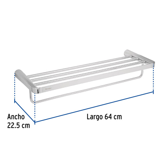 Proveedor:FosetToallero de barra metálico acabado cromo, Foset Túbig Caja con 6, 45970Barra de acero inoxidable y soportes metálicos Con sistema de montaje para semiempotrar Incluye llave allen, taquetes y tornillería para...