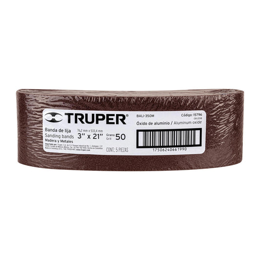 Truper1 banda de lija 3 x 21' p/madera grano 50 en paquete de 5 Caja con 5, 15796