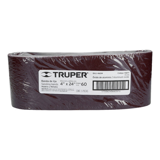 Truper1 banda de lija 4 x 24' p/madera grano 60 en paquete de 5 Caja con 5, 15877