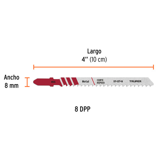 TruperBlíster con 5 seguetas 8 DPP zanco 'T' corte recto metal Caja con 10, 18132