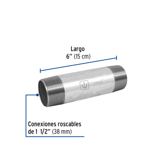 FosetNiple de acero galvanizado 1-1/2 x 6', Foset Caja con 4, 48838