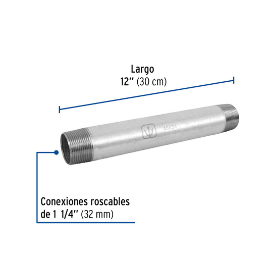Proveedor:FosetNiple de acero galvanizado 1-1/4 x 12', Foset Caja con 4, 48834Acero galvanizado Mayor durabilidad en cualquier condición climática Alta dureza Resistente a la corrosión, altas temperaturas y presiones Larga vida...