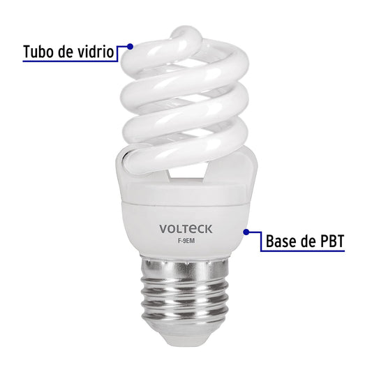 VolteckPack de 4 lámparas espiral mini T2 9 W luz de día, en caja Caja con 4, 48508