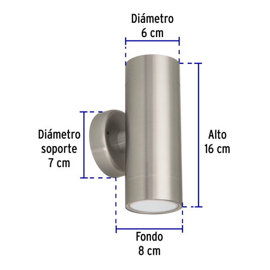 Proveedor:VolteckArbotante satín de LED 10 W de acento 2 spots luz cálida, 48009Cuerpo de acero inoxidable y pantalla de policarbonato Fácil instalación Ideal para jardines, fachadas, centros comerciales, y más