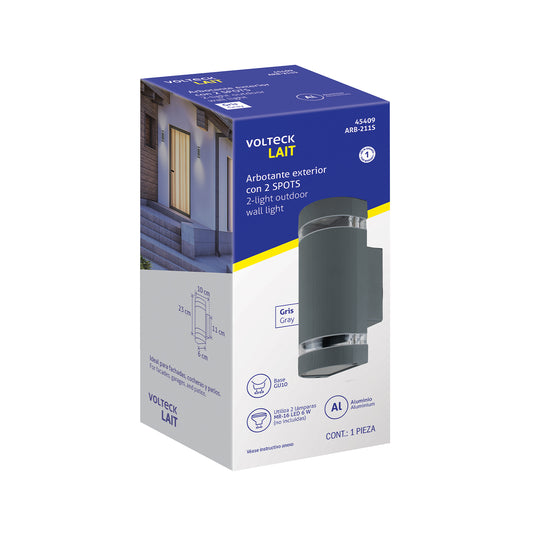 Proveedor:VolteckArbotante exterior con 2 spots, lámparas no incluida, gris, 45409Arbotante exterior con 2 spots, gris