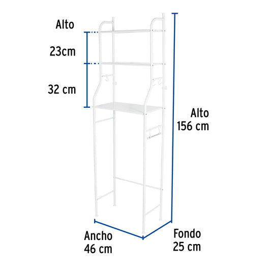 Proveedor:FosetMueble organizador blanco para baño con 3 repisas, Foset Caja con 2, 47907Fabricado en acero recubierto con pintura electrostática Soporte para papel higiénico (portarollo) 4 niveladores de piso para mayor estabilidad Ideal...