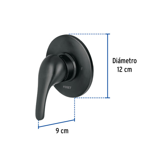 Proveedor:FosetMonomando para regadera, palanca, negro, Foset Aqua, 48472Cuerpo interno y chapetón fabricados en latón para máxima duración Maneral metálico Cartucho cerámico de suave y fácil apertura Conexiones...