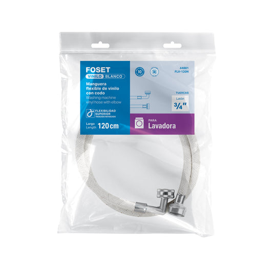 Proveedor:FosetManguera para lavadora, vinilo, c/codo 90, FOSET Caja con 6, 44881Manguera p/lavadora, vinilo, c/codo 90