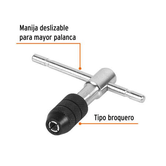 Proveedor:TruperManeral en T para machuelo 3/16', Truper Caja con 6, 11438Mordaza pavonada anticorrosión tipo broquero Manija deslizable para mayor palanca Ideal para herramientas de vástago cuadrado