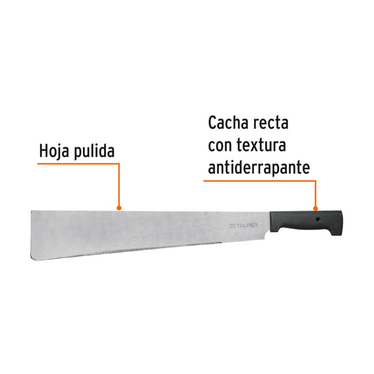 Proveedor:TruperMachete punta recta 18', cacha inyectada, Truper Caja con 4, 15891Cacha recta inyectada, con textura antiderrapante Ideal para corte de cocos y pesca Para corte de vegetación gruesa y leñosa...