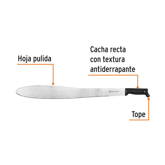 Proveedor:TruperMachete Caguayano 27' cacha naranja remachada, Truper Caja con 4, 15880Cacha ergonómica con textura antiderrapante para máximo agarre Cacha recta con tope y remaches sólidos para mayor seguridad