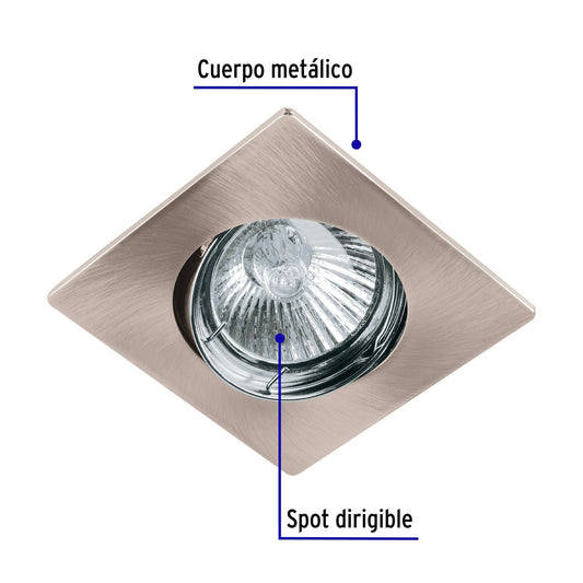 Proveedor:VolteckLuminario cuadrado satín spot dirigible, lámpara no incluida Caja con 4, 45565Cuerpo metálico Compatible con lámpara LED o halógena *Para lámpara de 12 V se requiere transformador de bajo voltaje (no...