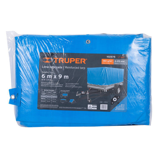 Proveedor:TruperLona reforzada, 6 x 9 m, azul, 102575Fabricadas en polietileno Bordes de 5 cm con sellado térmico Refuerzo de rafia en toda la orilla Para instalación permanente...