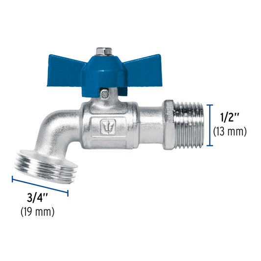 Proveedor:FosetLlave de esfera c/maneral corto, latón, 130gr, 1/2', Foset Caja con 6, 48308Cuerpo de latón niquelado para máxima duración Maneral de aluminio tipo mariposa 1/4 de vuelta Adaptador metálico para manguera de 1/2"