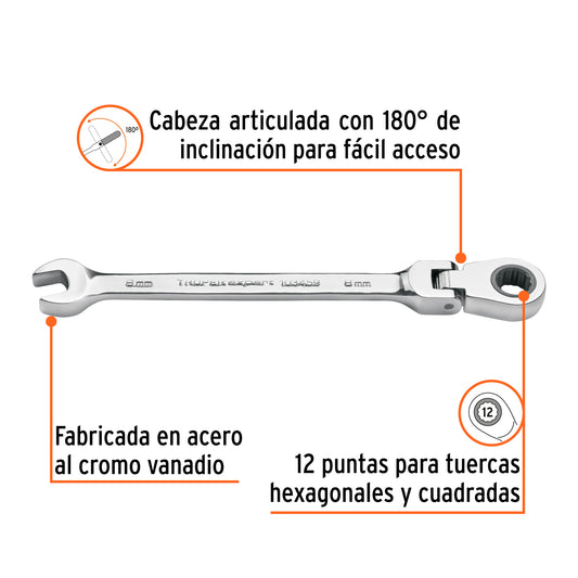 Proveedor:ExpertLlave combinada con matraca 8 mm flexible, Expert Caja con 3, 103459Fabricada en acero al cromo vanadio, 2X más resistentes al desgaste que las de acero al carbono Mecanismo con 90...
