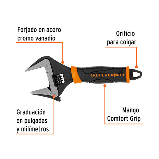 Proveedor:ExpertLlave ajustable (perico) 10' boca ancha Comfort Grip, Expert Caja con 6, 101035