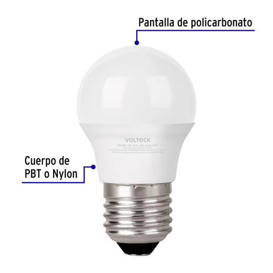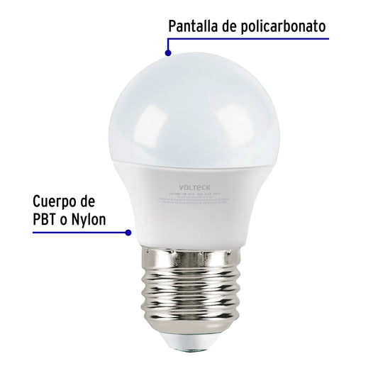 Proveedor:VolteckLámpara LED G45 3 W (equiv. 25 W), luz cálida, caja, Volteck Caja con 12, 47543Hasta 88% de ahorro, menor consumo de energía que las incandescentes Cuerpo de PBT o Nylon y pantalla de policarbonato Encendido instantáneo...