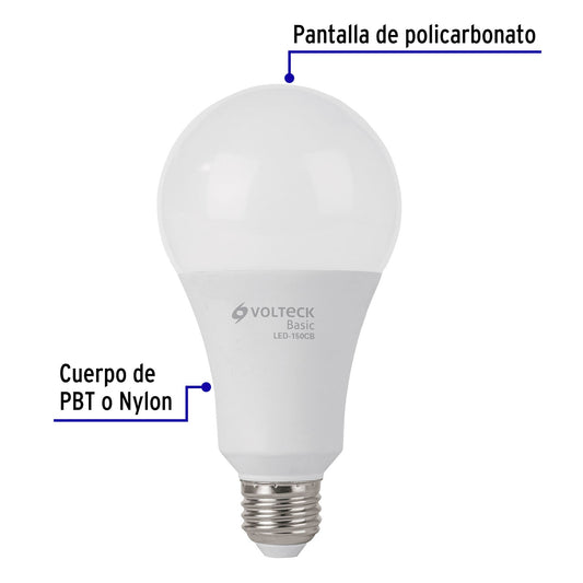 Proveedor:VolteckLámpara LED A22 16 W (equiv. 100 W), luz de día, caja, Basic Caja con 10, 28066Hasta 84% de ahorro, menor consumo de energía que las incandescentes Cuerpo de PBT y pantalla de policarbonato Encendido instantáneo (proporciona...
