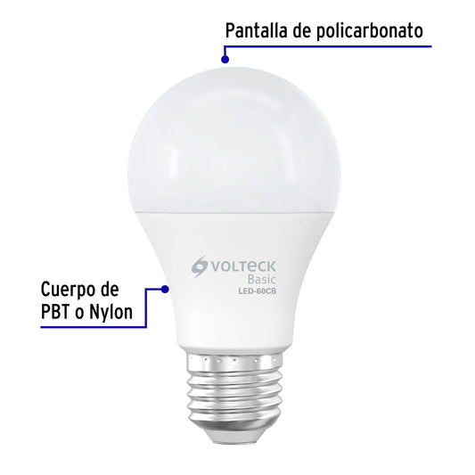 Proveedor:VolteckLámpara LED A19 6 W (equiv. 40 W), luz cálida, caja, Basic Caja con 10, 28060Hasta 85% de ahorro, menor consumo de energía que las incandescentes Cuerpo de PBT y pantalla de policarbonato Encendido instantáneo (proporciona...