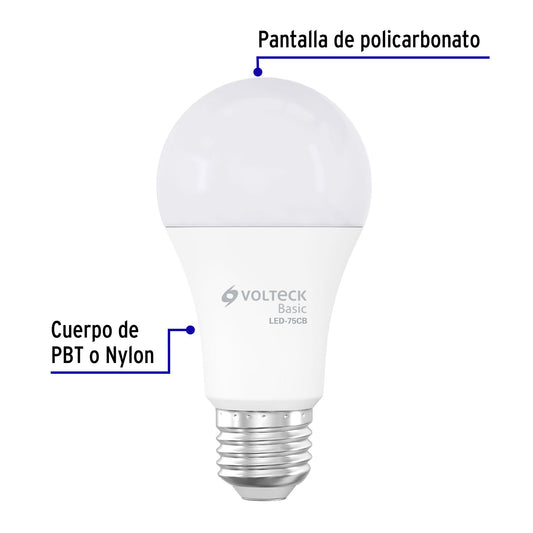 Proveedor:VolteckLámpara LED A19 14 W (equiv. 75 W), luz de día, caja, Basic Caja con 10, 28065Hasta 81% de ahorro, menor consumo de energía que las incandescentes Cuerpo de PBT y pantalla de policarbonato Encendido instantáneo (proporciona...