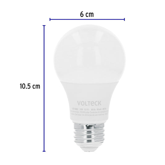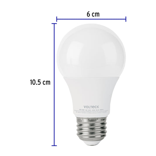 Proveedor:VolteckLámpara de LED atenuable tipo bulbo 9 W luz de día, blíster Caja con 4, 48297Hasta 85% de ahorro, menor consumo de energía que las incandescentes Cuerpo de PBT y pantalla de policarbonato Encendido instantáneo...