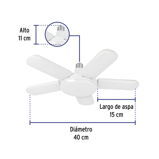 Proveedor:VolteckLámpara de LED 50 W, tipo ventilador con 5 aspas ajustables Caja con 2, 29006Ahorra hasta 92% en el consumo de energía Cuerpo de policarbonato Pantalla de poliestireno Aspas ajustables Ideales para uso doméstico y...