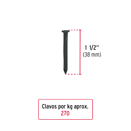 Proveedor:FieroKilo de clavos para concreto 1-1/2'negros, caja de 25 kg Caja con 25, 44845Fabricados en acero al carbono con tratamiento térmico de templado que brinda mayor resistencia y durabilidad difícil de doblar o...