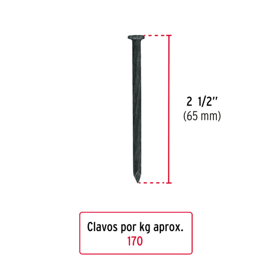 Proveedor:FieroKilo de clavos para concreto 2-1/2' negros, caja de 25 kg Caja con 25, 44847Fabricados en acero al carbono con tratamiento térmico de templado que brinda mayor resistencia y durabilidad difícil de doblar o...