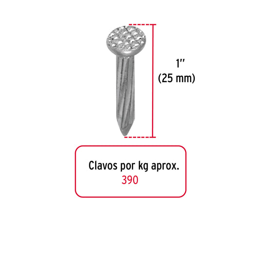 Proveedor:FieroKilo de clavos para concreto 1' galvanizado, caja de 25 kg Caja con 25, 44830Fabricados en acero al carbono con tratamiento térmico de templado que brinda mayor resistencia y durabilidad difícil de doblar o...