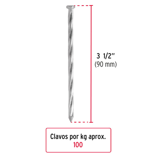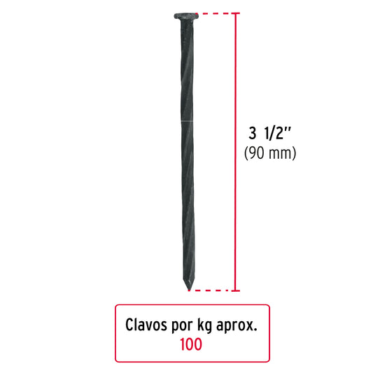 Proveedor:FieroKilo de clavos para concreto 3-1/2'galvanizado, caja de25 kg Caja con 25, 44835Fabricados en acero al carbono con tratamiento térmico de templado que brinda mayor resistencia y durabilidad difícil de doblar o...