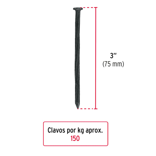 Proveedor:FieroKilo de clavos para concreto 3' negros, caja de 25 kg, FIERO Caja con 25, 44848Fabricados en acero al carbono con tratamiento térmico de templado que brinda mayor resistencia y durabilidad difícil de doblar o...