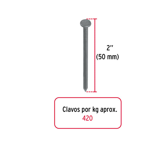 Proveedor:FieroKilo de clavo estándar 2' con cabeza en caja de 25 kg, Fiero Caja con 25, 44152Fabricados en acero al carbono Punta diamante con ángulo de 45° que proporciona mayor penetración Para uso en albañilería, carpintería,...