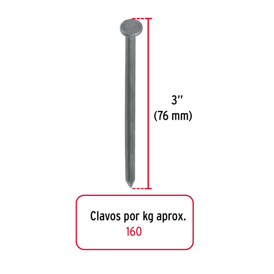 Proveedor:FieroKilo de clavo estándar 3-1/2' con cabeza en caja de 10 kg Caja con 10, 40169Fabricados en acero al carbono Punta diamante con ángulo de 45° que proporciona mayor penetración Para uso en albañilería, carpintería,...
