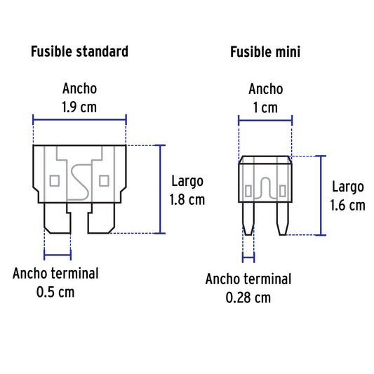 Proveedor:VolteckJuego de fusibles automotrices estándar y mini, 300 pz Caja con 4, 48302Cuerpo de plástico con terminal de aluminio Protección de sistema eléctrico Contiene los fusibles más usados en automóviles, camiones y todoterrenos