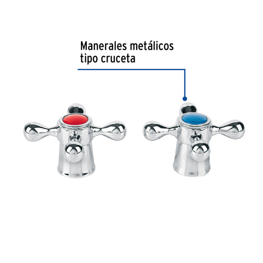 Proveedor:FosetJuego de manerales de cruceta p/lav-fregadero, cromo, Basic Caja con 4, 45711Manerales tipo cruceta metálicos Para mezcladoras modelos M-048E, M-050E, M-060E, M-070E, F-317E, F-318E, F-319E y F-320E marca Foset Basic®