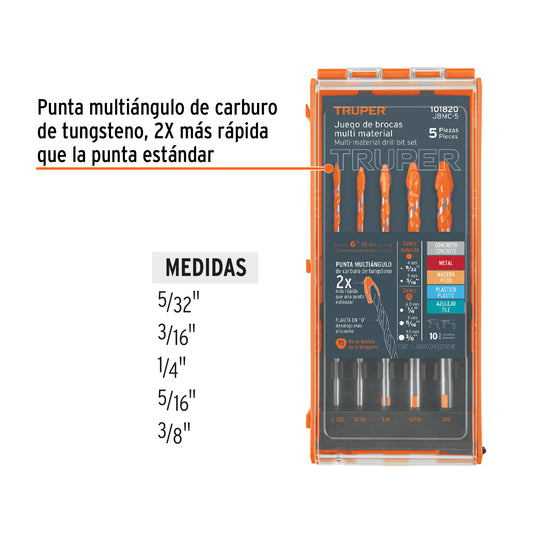 Proveedor:TruperJuego de 5 brocas multimaterial, Truper Caja con 4, 101820
