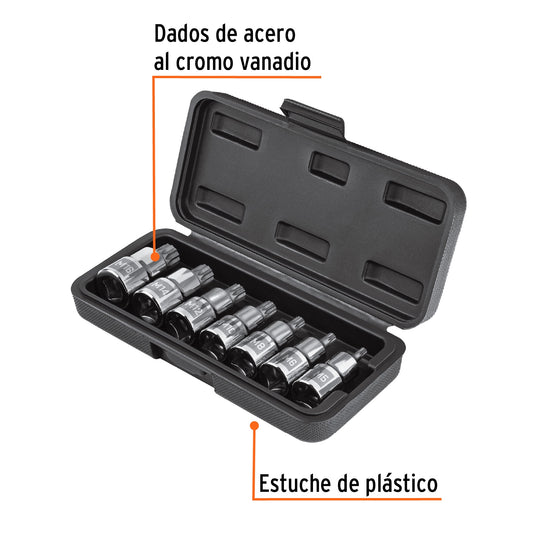 Proveedor:TruperJuego de 7 dados torx cuadro 1/4', Truper Caja con 4, 10027