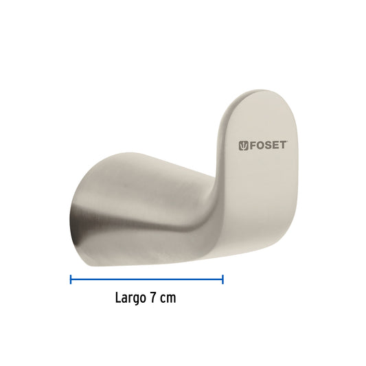 Proveedor:FosetGancho sencillo metálico acabado satín, Foset Aqua Caja con 6, 45986Metálico Con sistema de montaje para semiempotrar Incluye llave allen, taquetes y tornillería para su instalación