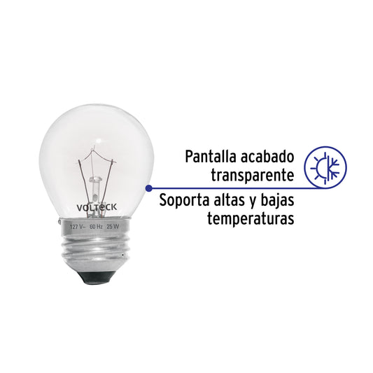 Proveedor:VolteckFoco incandescente 25W para horno/refrigerador, transparente Caja con 10, 49384Pantalla de vidrio Para horno y refrigerador