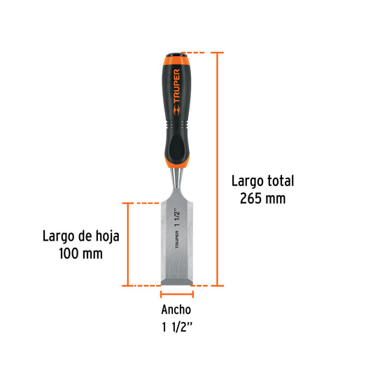 Proveedor:TruperFormón 1-1/2' mango Comfort Grip, Truper Caja con 3, 14639Fabricado en acero al cromo vanadio 2x más resistente al desgaste y mayor durabilidad de filo Mango ergonómico con apoyo...