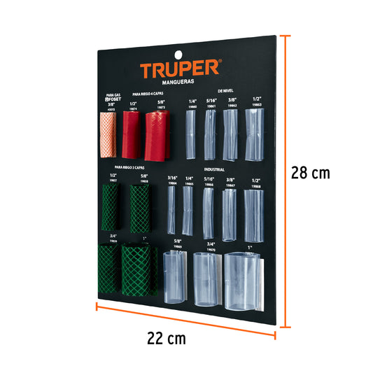 Proveedor:TruperExhibidor Truper de mangueras para jardín, nivel y gas, 55561