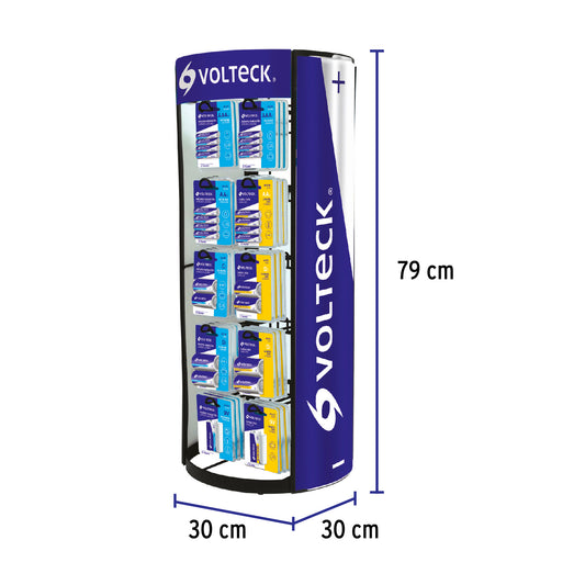 Proveedor:VolteckExhibidor despachador de pilas Volteck 1, 55887Fabricado de alambre redondo pulido Acabado semi-mate con pintura electrostática color negro Logotipo impreso en cartón caple en la parte superior...