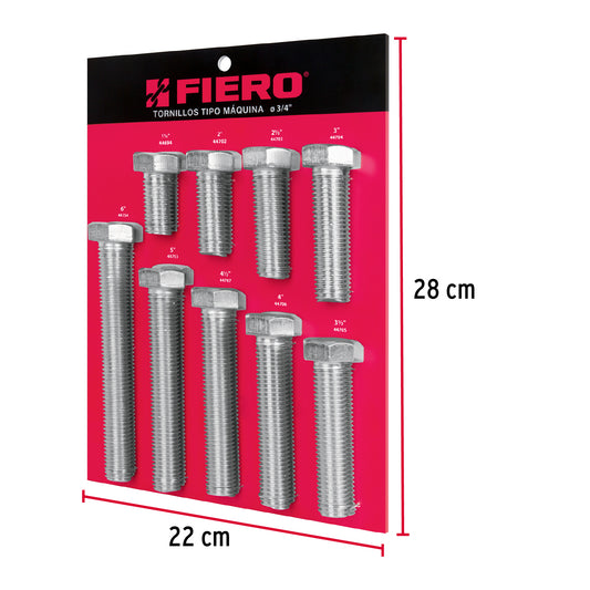 Proveedor:FieroExhibidor Fiero de tornillos #3, grado 5, 55700Ideal para cuando un usuario llega con una muestra y no conoce la medida Producto montado sobre hoja de PVC...